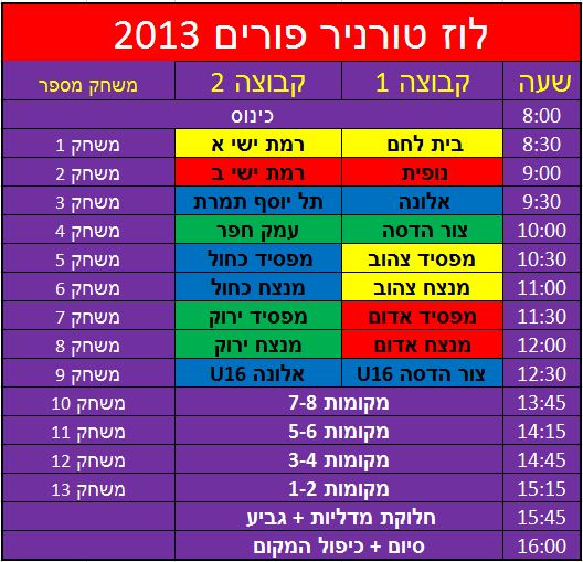שחקניי כל הקבוצות יתכנסו במגרש בשעה 8:00 בבוקר, סיום מתוכנן לקראת השעה 15:00, מחופשים, שמחים להיות על המקום בו הם הכי אוהבים להיות ( המגרש כמובן ) ומלאים תשוקה לשחק הוקי כמובן 😉