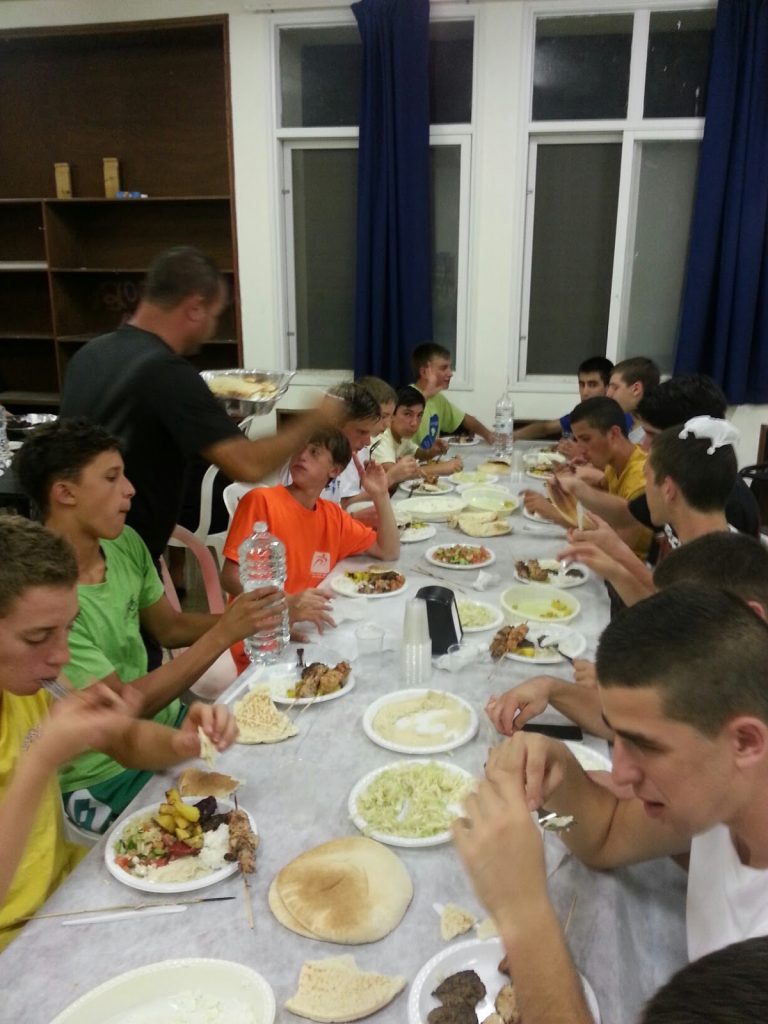 אחרי האימון הראשון (שהיה מאוד אינטנסיבי) נכנסנו כולנו לבריכה וכבר חיכה לנו אסף עם אוכל ביתי איכותי. השחקנים נכנסו למים, התרעננו, שיחקו כדור עף והתגבשו. איזה כיף.