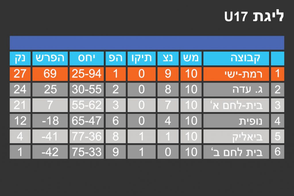⇐ תוצאות ⇐ טבלת תוצאות ליגה U17 לעונת 2016-2017