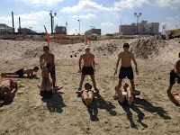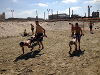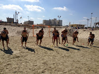 השחקנים הגיעו לים, המאמן פתח את הרכב, ומשם יצאו כדורי כוח, קונוסים,
